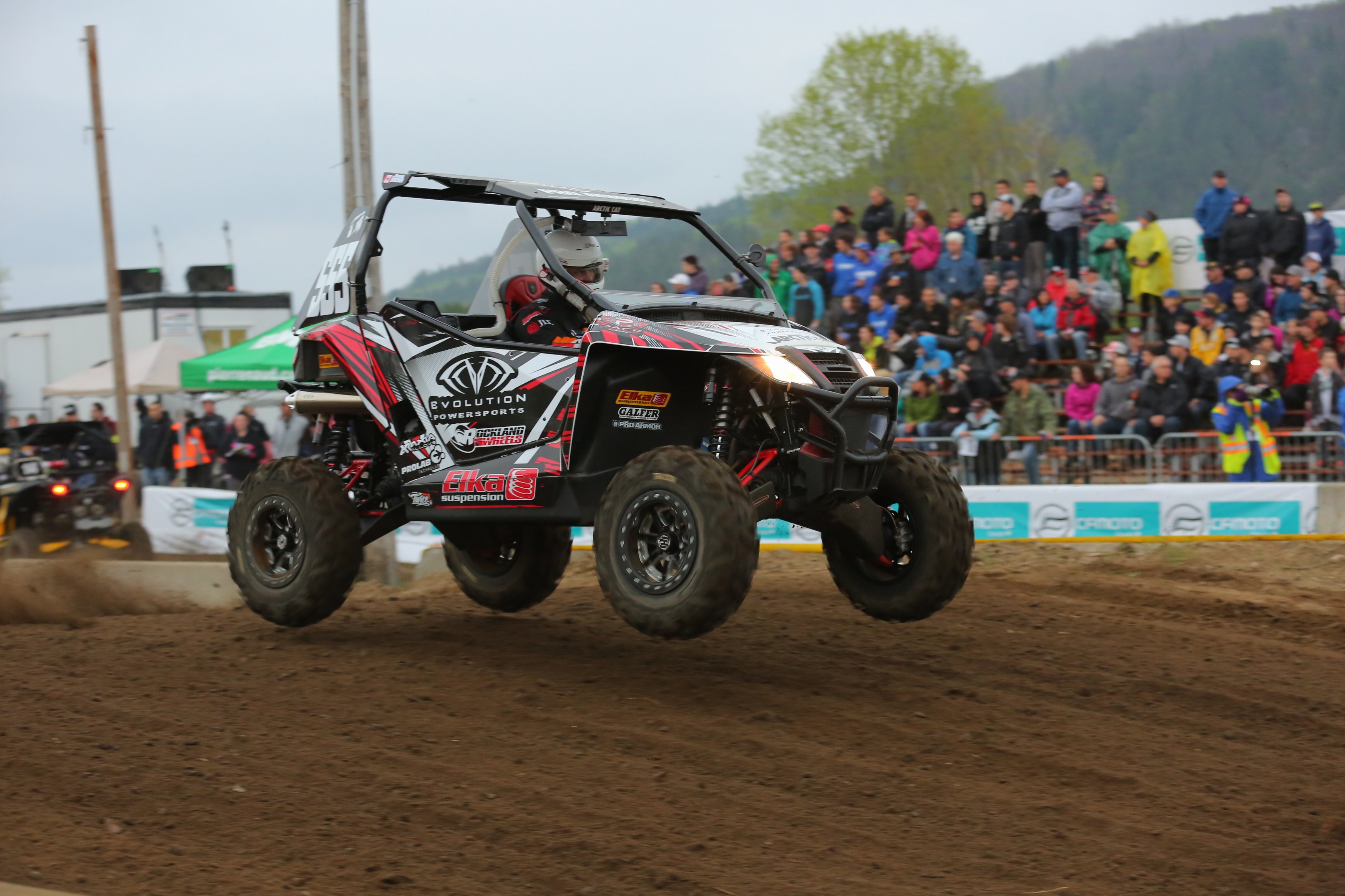 Journalist Patrick Bray ran his CF Moto #18 to the front for a win in the Open 600-800cc Class aboard Elka’s Stage 4 shocks. He was followed by Lalonde Racing’s #16 Marc-Antoine Lalonde aboard his Elka-equipped Polaris RZR. In third place was Adrenalin Racing’s #555 David Ivicheck aboard his Wildcat Sport Limited equipped with OEM Elka shocks.