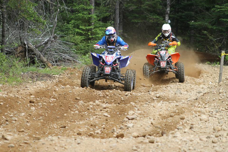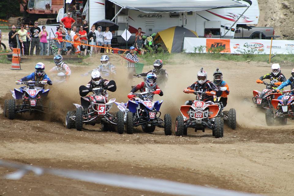 Depuis que les gars participent à des courses, je n’ai jamais assisté à une épreuve aussi excitante. La piste était rapide, un tour durait environ 10 minutes. Au premier passage au scan, Gabriel s’est pointé en deuxième place et François en cinquième. Contrairement à l’écart qui se crée normalement entre les pilotes après quelques tours, cette fois-ci, les 7-8 premiers se suivaient de très près, ne permettant aucune erreur. Gabriel était suivi par notre ami Sam Péloquin (#71) et François, dès le troisième tour, talonnait David Piché (#171 – le héros de son enfance). C’était vraiment excitant.